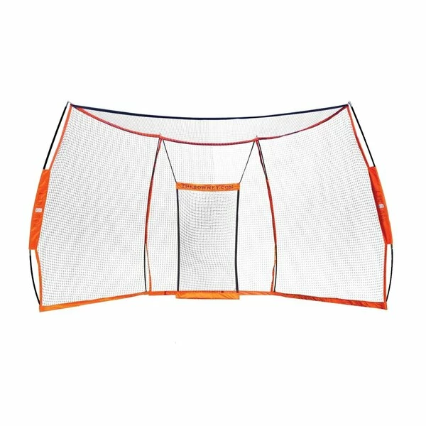 Turn any patch of grass into a baseball field with the Portable Multi-Sport Backstop. Coaches and players worldwide prefer this 17.6′ wide x 9.6′ tall backstop to protect their spectators and give outstanding reliability during practice or a game. The backstop has a large overhang to protect from foul balls and can be used as a catcher during soft-toss, tee work, infield practices, and more. Bownet’s EAS™ technology (Energy Absorption System™) helps reduce stress and tension on the netting, extend the lifespan of the net, create a more balanced backstop, and add flexibility and stability upon impact. Powder coated steel frame have non-marking rubber feet to prevent damage to floors and provide stability and traction indoor and outdoor. The Backstop sets up in 3 minutes without pull straps, screws, or tools required and is lightweight making it easily maneuverable across a field or gym. The Bownet Portable Backstop includes a Baffle Net and a Canvas Baffle with a printed strike-zone to turn this backstop into an all-in-one practice net that you can hit or throw into or out of. Collapse the backstop and place into the provided manageable roller case for easy portability and storage. One year limited manufacturer warranty available. Play Anywhere, Play Now, Play Bownet!®