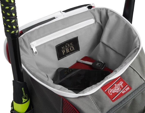 In addition to its stylish look, the large main storage compartment converts to a game-time shelf for easy access to your gear. Whether it’s on the ground or hanging up by its fence hook, the Impulse bag helps you stay organized throughout games and practices. It’s also equipped with a ‘Mark of a Pro’ pocket in the customizable top valet tray to keep your valuables safe and out of sight. The Impulse can carry two bats thanks to its neoprene side-pocket bat sleeves. This baseball equipment bag even has an internal cleat/turf compartment too! All of this was put together and constructed from durable ripstop and polyester material with an easy-to-clean tarpaulin bottom. That’s why the Impulse is so functionable, and durable. You can even promote your team thanks to 2 customizable panels!
