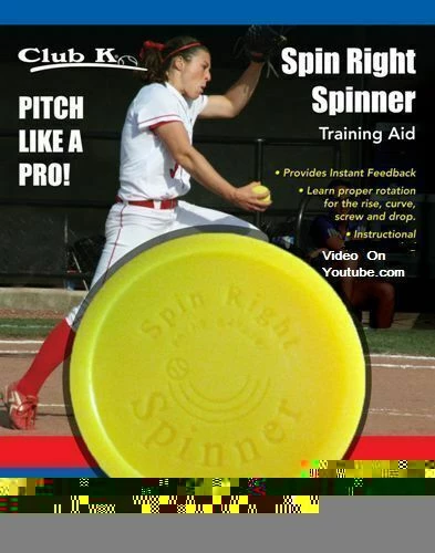 Improve your pitching performance with the Club K® Spin Right Softball Spinner. Invented by hall-of famer Cheri Kemp, this training aid teaches proper technique of movement pitches, Fastpitch pitches and overhand throwing to players. The shape of the Spinner is the exact diameter and weight of a softball and allows for clear and concise feedback on spin direction and release.