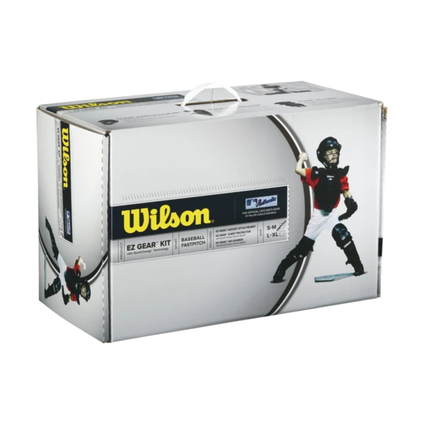 Wilson EZ Gear kit is built with QuickChange technology for easy on-and-off in ten seconds or less. It comes complete with a helmet, chest protector and leg guards. This kit is perfect for the youth ball player.